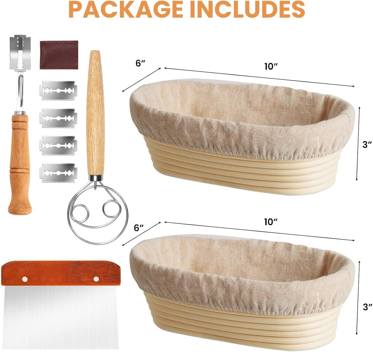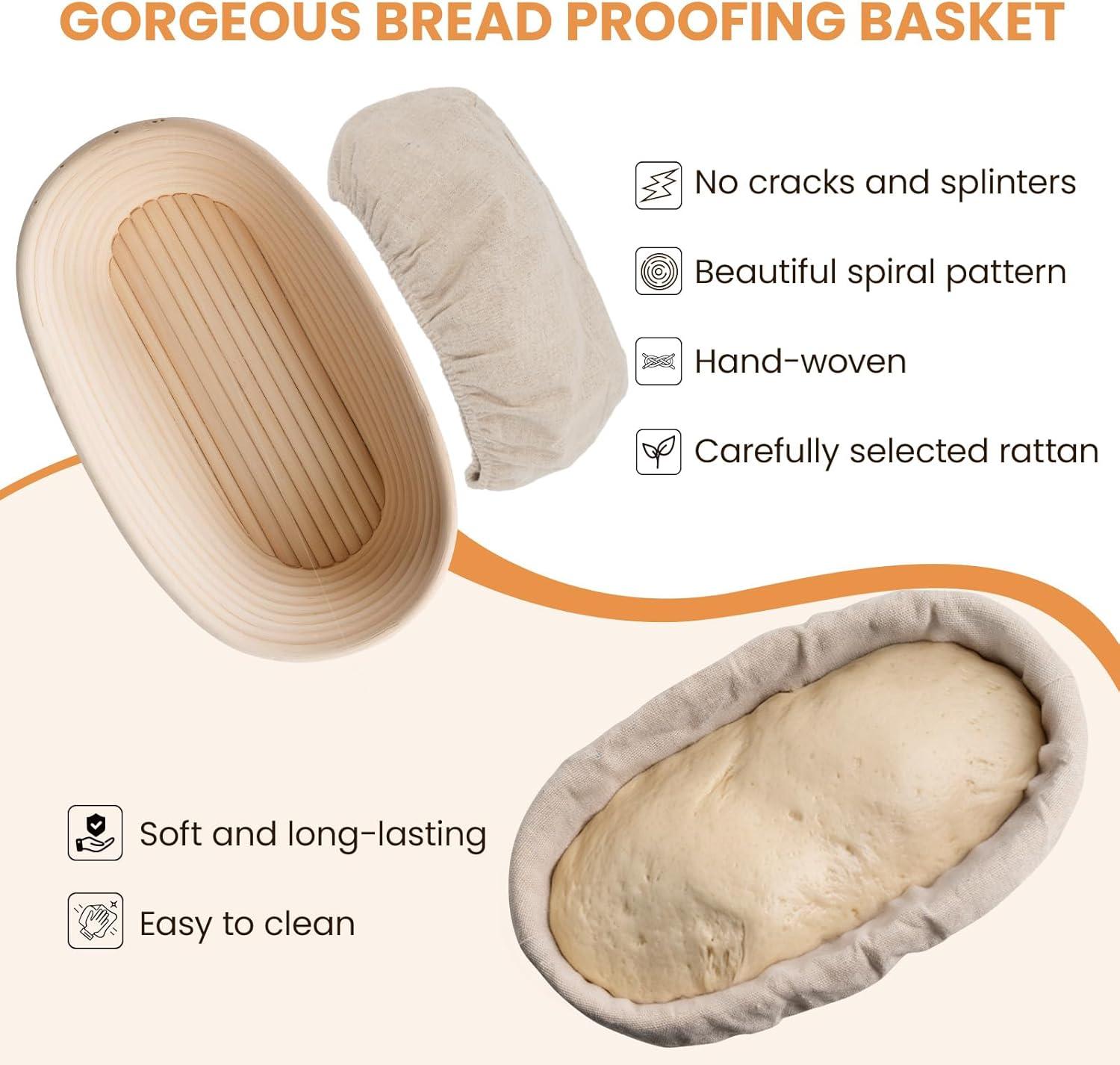 5 Inch Banneton Bread Proofing Basket Set of 6, Kikcoin Mini Sourdough Bread Baking Supplies, Small Banneton Basket Proofing Baskets for Sourdough Bread Baking(10" Oval Baskets - 2 Pack)