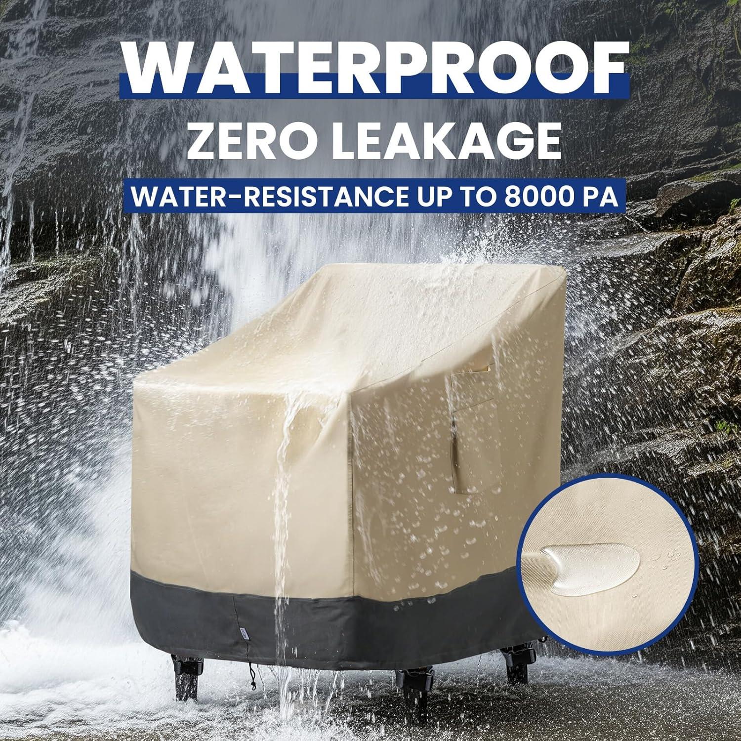 Extra Heavy Duty Patio Chair Covers Waterproof Up to 8000pa, 2 Pack Patio Furniture Covers for Outdoor Swivel/ Rocking Chair/ Adirondack Chairs, Outdoor Seat Cover with Air Vents, 33"W x 35"D x 38.5"H(Beige with Grey)