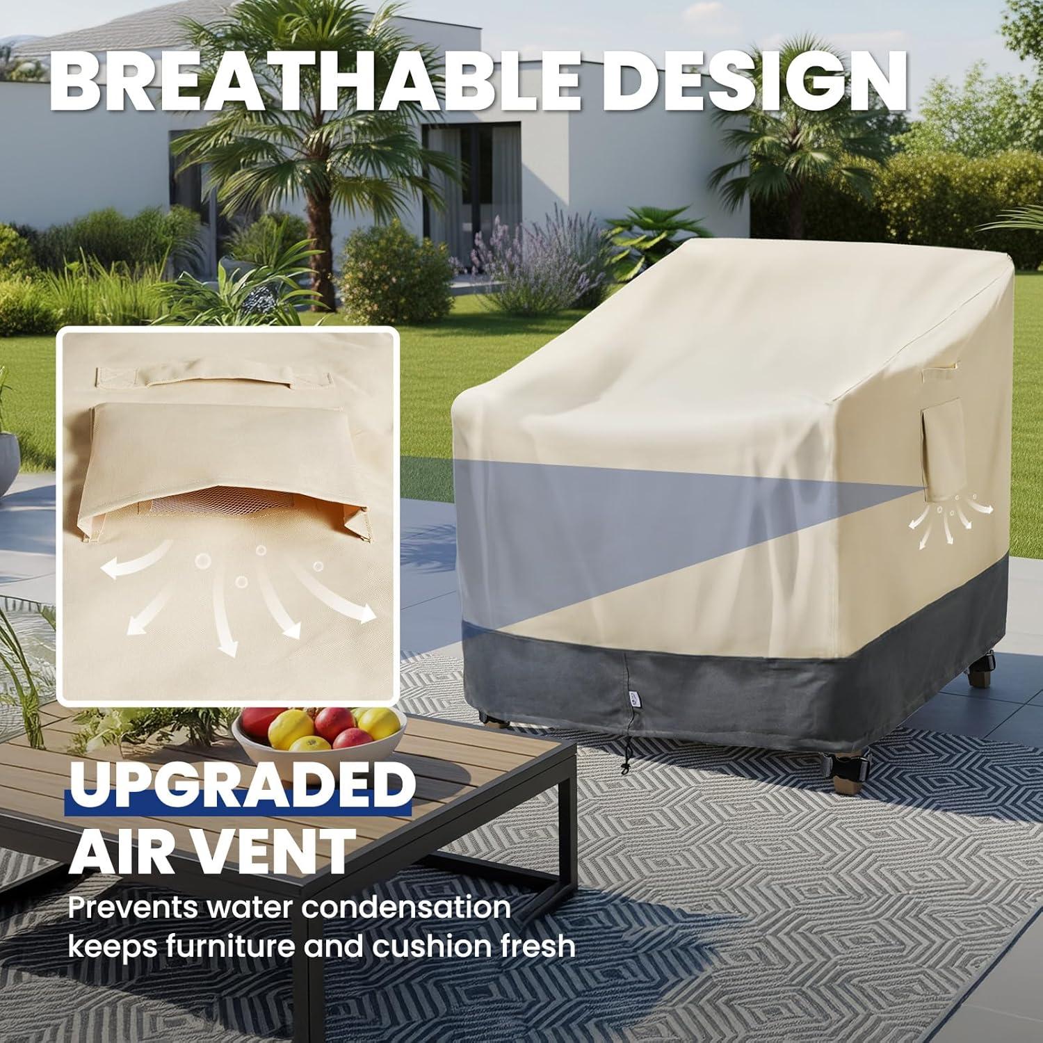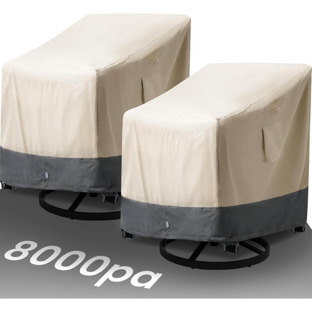 Get the Extra Heavy Duty Patio Chair Covers Waterproof Up to 8000pa, 2 Pack Patio Furniture Covers for Outdoor Swivel/ Rocking Chair/ Adirondack Chairs, Outdoor Seat Cover with Air Vents, 33"W x 35"D x 38.5"H(Beige with Grey) you’ve been eyeing at a discounted price during our seasonal sale event.