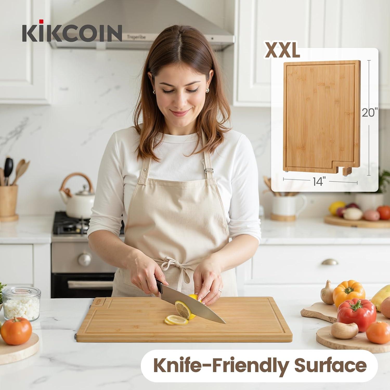 Kikcoin Bamboo Cutting Boards for Kitchen, Extra Large Wood Cutting Board with Rotating Kickstand & Juice Groove, Wooden Chopping Board for Meats Veges Fruits, Heavy Duty Serving Tray, 17 x 11.3 inch(20"L x 14"W)