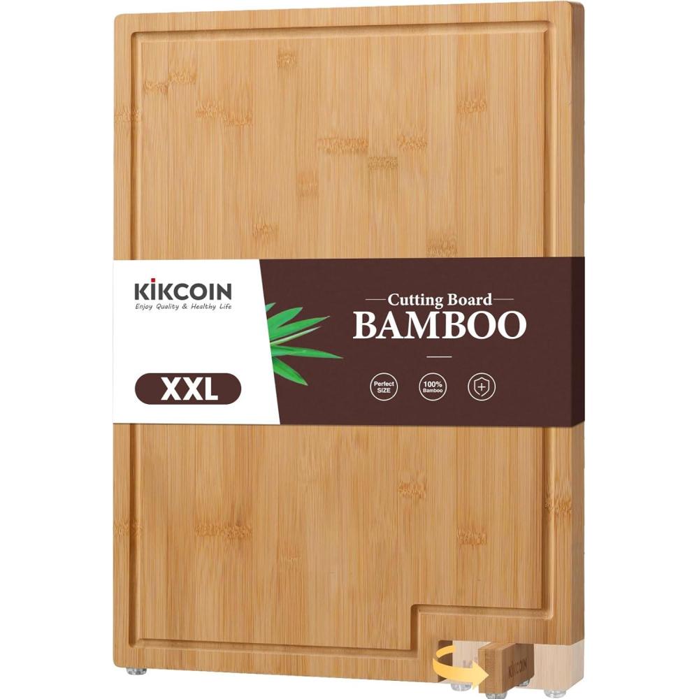 Kikcoin Bamboo Cutting Boards for Kitchen, Extra Large Wood Cutting Board with Rotating Kickstand & Juice Groove, Wooden Chopping Board for Meats Veges Fruits, Heavy Duty Serving Tray, 17 x 11.3 inch(24″L x 18″W)