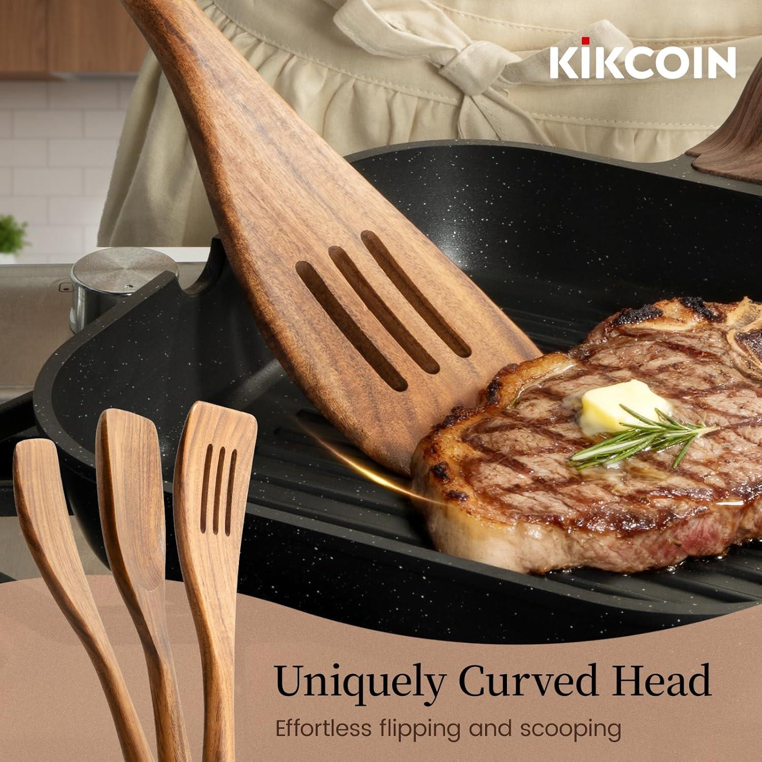 【Uniquely Curved Head】: These wooden spoons for cooking feature a curved, thinner head for effortless flipping. They slide easily under foods, providing superior control without tearing. This combination of a graceful curve and a thin & nimble edge makes flipping incredibly easy